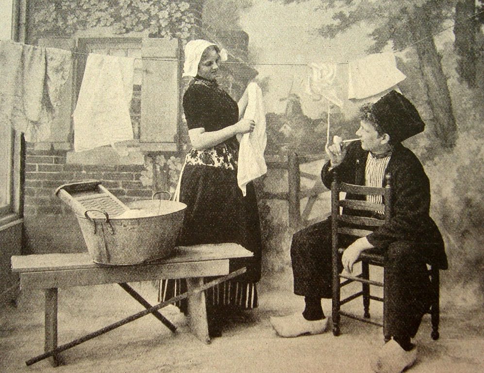 До средины 19 века вещи приходилось стирать вручную – ни хороших моющих средств, ни стиральных машин не было. Также не хватало оборудования, позволяющего хоть немного высушить белье перед тем, как его развешивать. Стиркой занимались прачки, пишет vienna1.one
